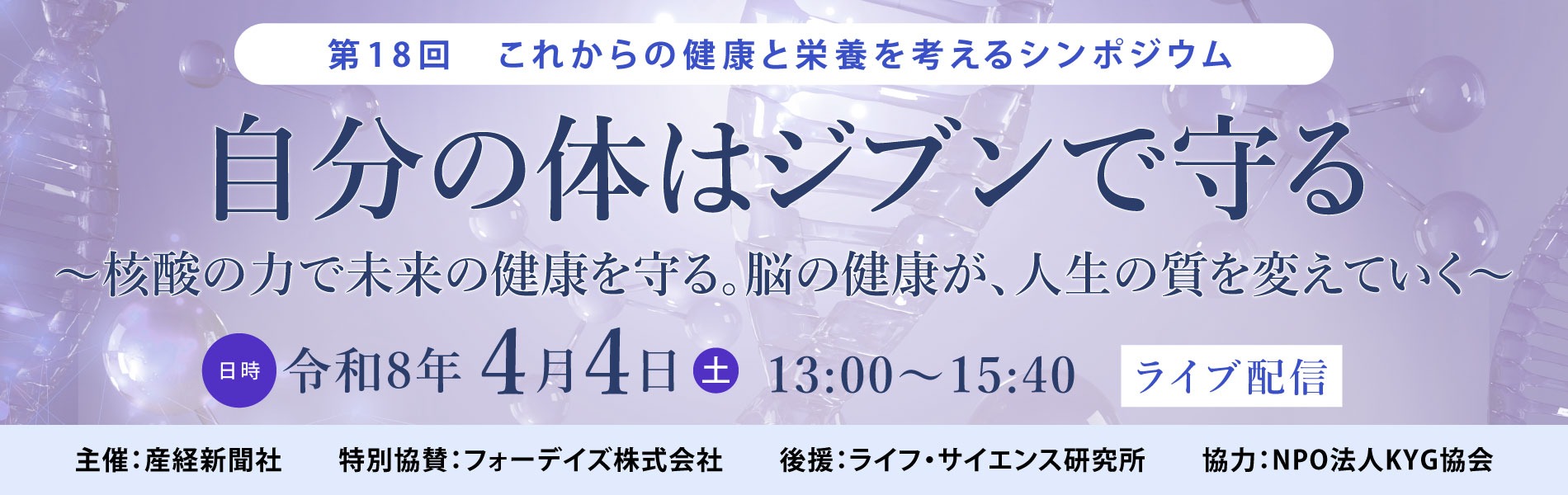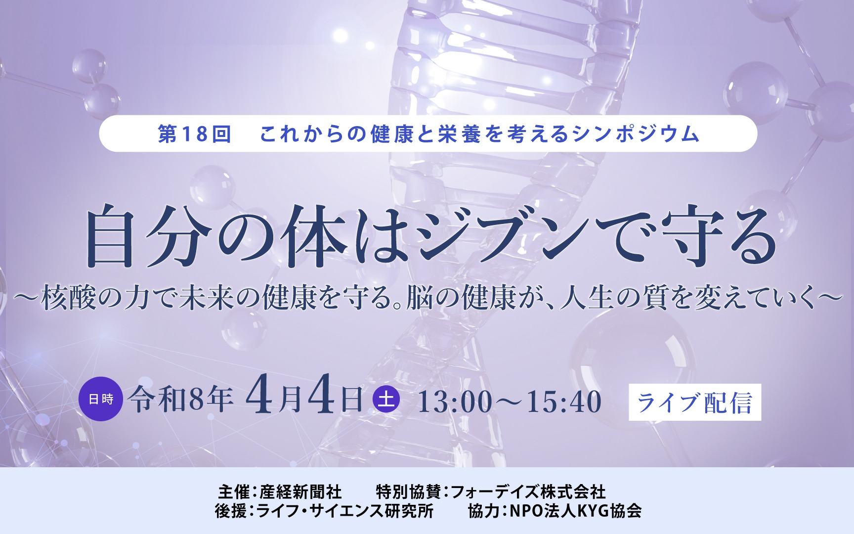 第18回 これからの健康と栄養を考えるシンポジウム 「自分の体はジブンで守る」 ~ 核酸の力で未来の健康を守る。脳の健康が、人生の質を変えていく ~ |